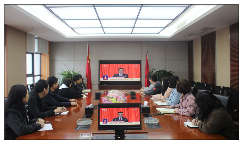3月5日上午9时,国信集团组织职工收看两会盛况,认真聆听国务院总理李克强关于政府工作的报告。