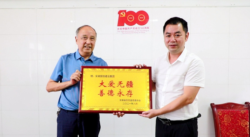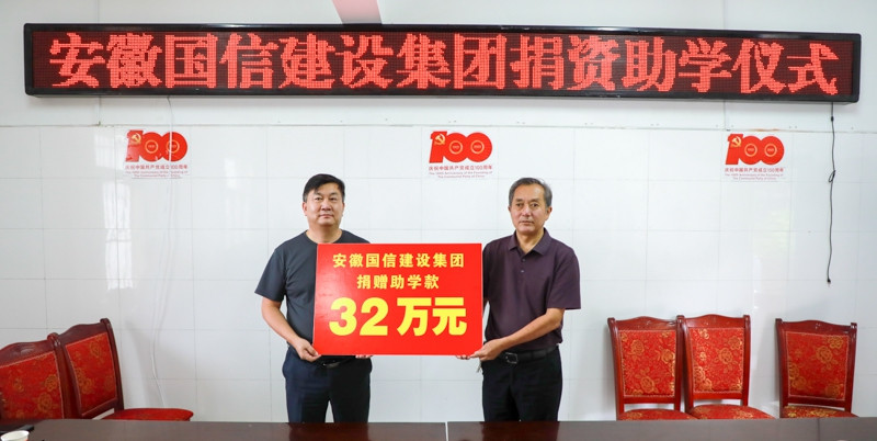 仪式上,国信集团向岳西县40名大学生和60名高中生捐赠助学款32万元,陈浩浩及县民政局负责人先后向国信集团颁发了荣誉牌和捐赠证书。