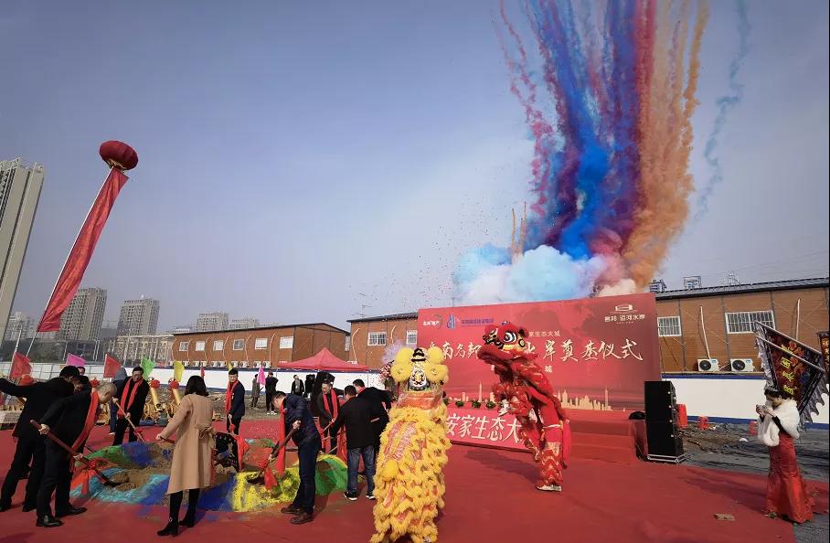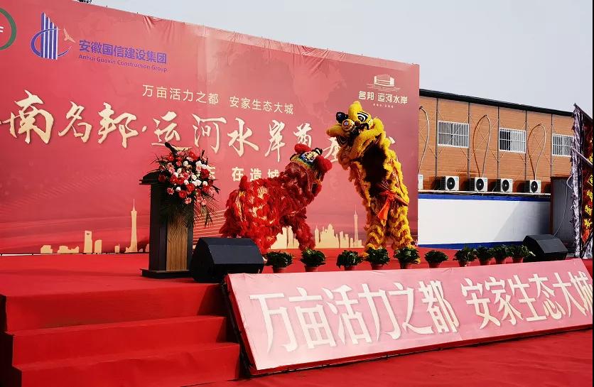仪式上,名邦置业集团副总裁夏兆生、国信集团副总经理张官斌分别致辞。紧接着,名邦置业集团常务副总裁李宽洲宣布奠基仪式正式启动。在热烈的掌声中,领导嘉宾们共同来到奠基池,拿起金锹,为奠基石注入了幻彩鎏金。至此,阜南名邦·运河水岸项目正式奠基,开始全面进入施工阶段。