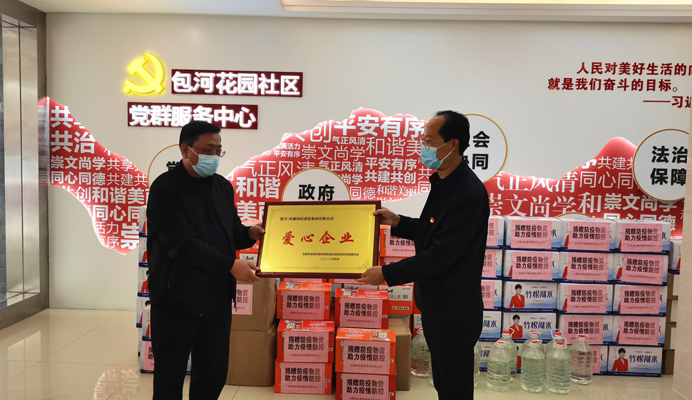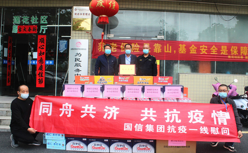4月14日下午,国信集团党支部副书记、副总经理张官斌,办公室主任何章龙与包河区骆岗街道文明办主任吴森一同前往包河花园社区,向社区捐赠口罩、消毒液、酒精、方便面、矿泉水等防疫物资,慰问一线抗疫工作者。“这批物资种类齐全,很实用,正是我们急需的,真是太感谢了!”包河花园社区党委书记陆海兵表示,会将防疫物资妥善分配,全部用于疫情防控一线工作中,确保防控一线工作人员的防护安全。骆岗街道文明办主任吴森对国信集团的慷慨相助表示感谢:“作为合肥市文明单位,国信集团积极支持社区疫情防控工作,为社会大众做出了榜样,体现了国信集团的社会责任担当。”