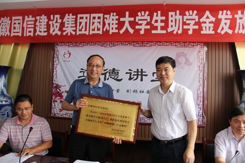 仪式上,国信集团向岳西县慈善协会捐赠助学款20万元,岳西县慈善协会向国信集团颁发荣誉牌。与会人员现场将20万元助学款发放到40名受助学生手中。学生代表方诗全作感谢发言。