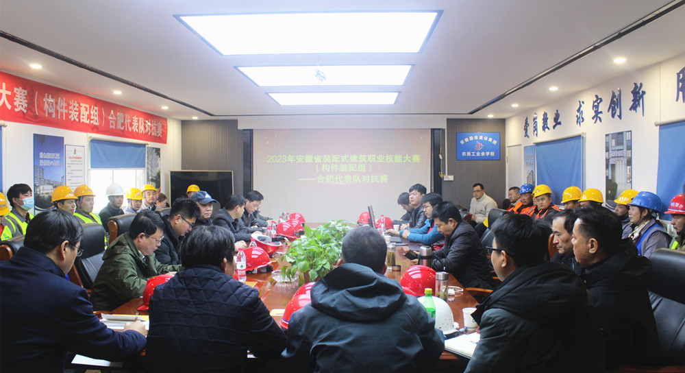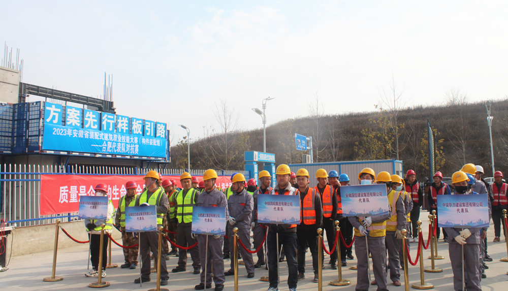 本次对抗赛以“弘扬工匠精神、装配品质建筑”为主题,旨在为即将参加安徽省装配式建筑职业技能大赛的合肥市代表队提供一个相互学习、切磋技艺、提高技能的公平公正平台。共有中铁四局、合肥建工、中安华力、同济建设、宏志建设、国信建设等6家装配式建筑施工企业的36名选手参加比赛。