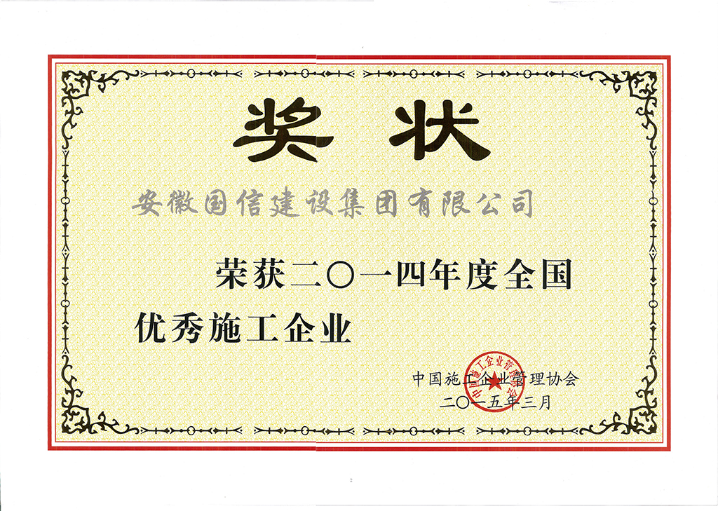3月23日,中国施工企业管理协会发布2014年度全国优秀施工企业的表彰决定,国信建设公司被评为“2014年度全国优秀施工企业”,费家仓为全国工程建设优秀项目经理。