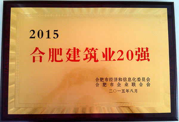 合肥市经信委、合肥企业联合会根据企业产值、营收、纳税等数据评选出2015合肥企业50强、合肥建筑业企业20强,我公司分别荣登合肥企业50强第43位、合肥建筑业企业20强第12位。