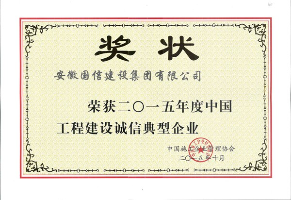 2015年11月26日上午,中国工程建设诚信企业推介大会在北京召开,大会表彰了164家“AAA级信用企业”和172家“2015年度中国工程建设诚信典型企业”,国信集团公司同时荣获这两项殊荣并上台领奖。