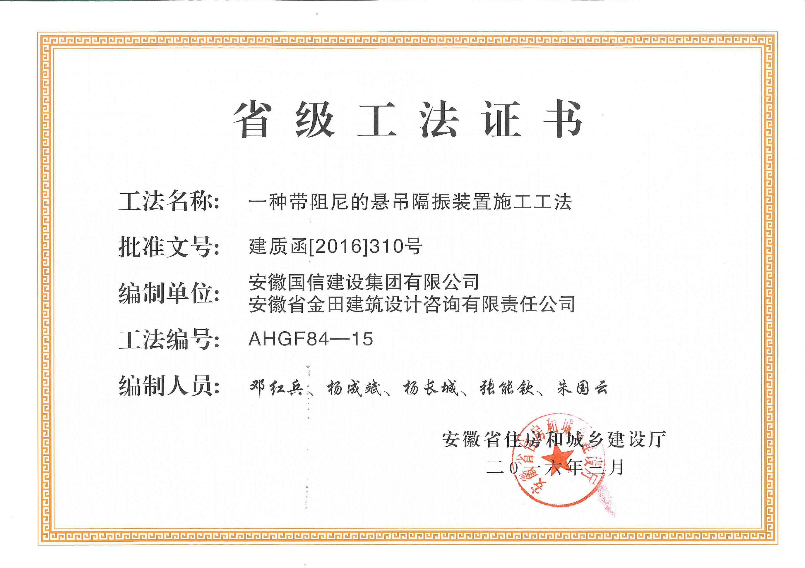 省级工法:一种带阻尼的悬吊隔振装置施工工法