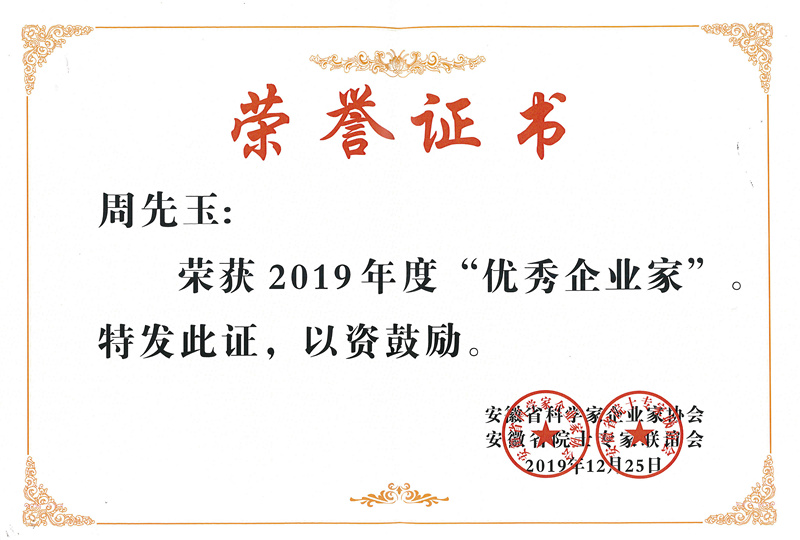 1月14日,安徽省科学家企业家协会第四次会员代表大会暨新春联谊会在合肥举行。大会表彰了一批爱岗敬业、品德高尚、业绩突出的先进人物和先进单位,国信集团及其董事长周先玉凭借为地区经济建设和社会发展做出的贡献,分别荣获2019年度“最具影响力企业”和“优秀企业家”称号。