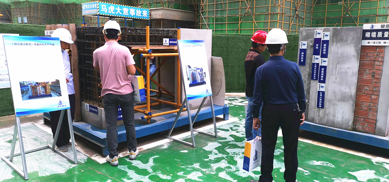 观摩中,参加活动人员在项目部工作人员的引导下,依次对胜利社区二期棚改项目施工现场的样板展示、施工材料、实体质量、文明施工等内容进行观摩交流,并不时拍照以供学习参考,对该项目施工中的优秀做法和诸多亮点给予好评。在随后召开的专题会上,国信集团副总经理李炳胜就该项目在安全文明、质量管控等方面的举措做了经验交流分享和汇报,并表示在后期工作中不断提升,力争取得更大成绩,将该项目打造成阜南县精品工程、标杆工程、民心工程。